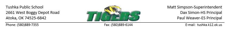 October 6, 2025 Tushka Parents/Students/Staff: The
